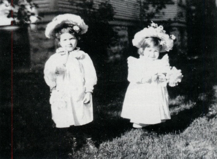 That's Ernest on the right(!) with taller "twinned" sister Marcelline, June 1901. Mother Grace captioned it "two summer girls with their peonies". (Hemingway collection at the John F. Kennedy Library)