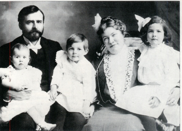 The Hemingways in idealized family portrait, 1903: Ursula, Ernest and Marcelline with their parents. (Hemingway collection at the John F. Kennedy Library)
